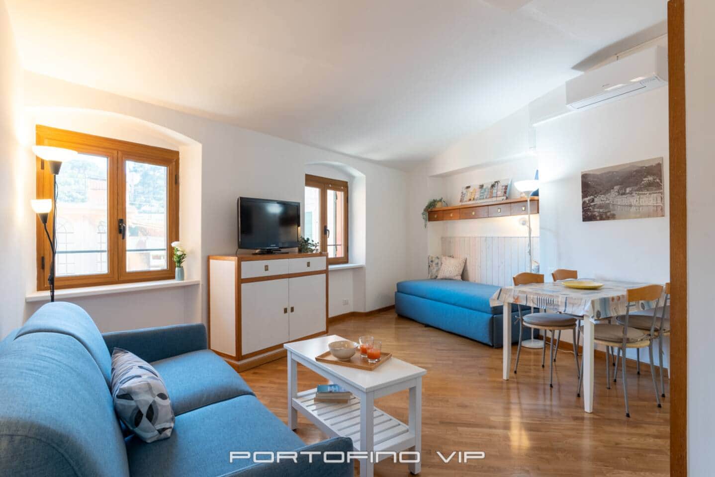 La mansarda è dotata di due pratici divani letto, ideali per coppie, amici o piccole famiglie. L’ambiente è luminoso, accogliente e curato nei dettagli.